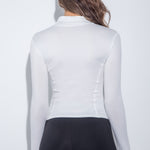 Buso deportivo manga larga ajustado con cierre frontal.