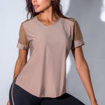 Blusa manga corta cuello redondo con cortes en tull y tela de tacto suave para brindarte frescura, un básico ideal para complementar tus looks deportivos.